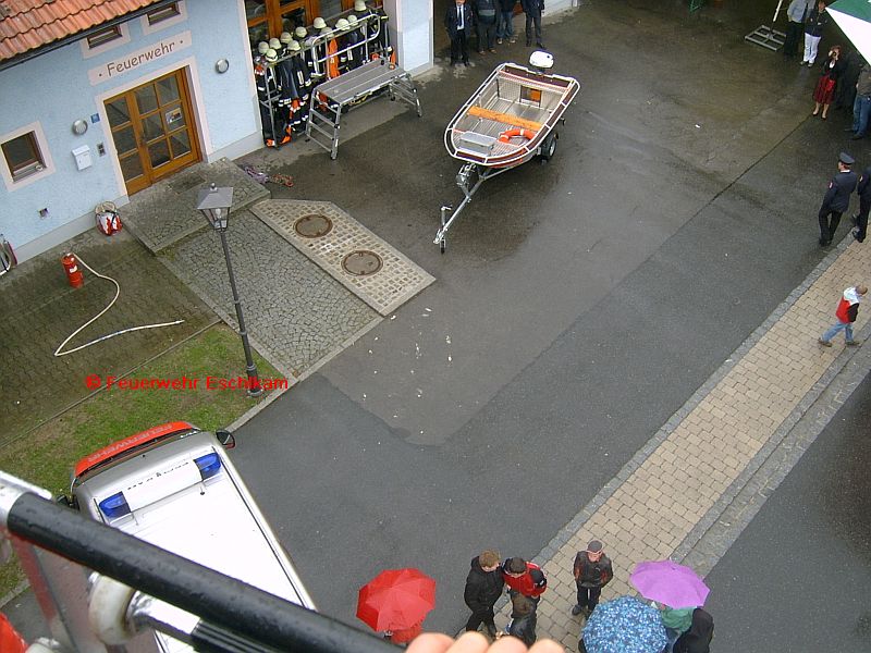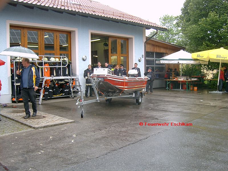 Der Großainger Spielmannszug führte die sechs Ortswehren des Marktes Eschlkam und die geladenen Gäste in einem Kirchenzug zur St. Jakobus-Kirche, wo der Festgottesdienst und die Weihe des neuen Bootes statt fand. Nach dem gemeinsamen Mittagessen im Eschlkamer Gerätehaus stand am Nachmittag ein "Tag der Offenen Tür" mit Fahrzeug- und Geräteschau an. Auch wurden verschiedene Vorführungen (Löschangriff, Rettung eingeklemmte Person mit Spreizer und Schere, "Feuerwehrmodenschau" usw.) angeboten, um den Besuchern die Arbeit der Feuerwehr vorzustellen.